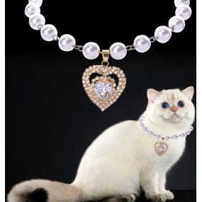 Transforma fiecare plimbare intr-o aparitie stralucitoare cu acest colier rafinat pentru animale de companie. Creat special pentru pisici si caini, colierul imbina delicatetea perlelor cu stralucirea unui diamant decorativ, completat de un pandantiv adorabil in forma de inima.